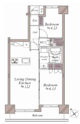 専有面積壁芯 51.19m2 (15.48坪)