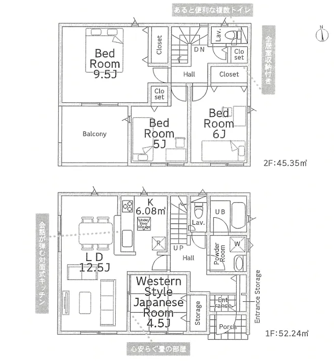 開放感ある北西角地!ゆとりの4LDK。各居室収納付きです♪バス停徒歩約1分のため、駅へのアクセスも良好☆ <1号棟>
