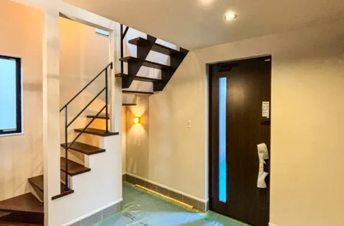 3路線利用可能の好立地物件!長期優良住宅認定物件☆22帖超の広さと南側吹抜けによる明るいLDK♪ストリップ階段と吹抜けを併設した開放的な玄関ホール!