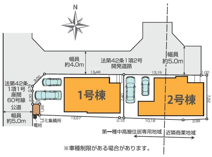 接道状況北4m公道に13.48m面す