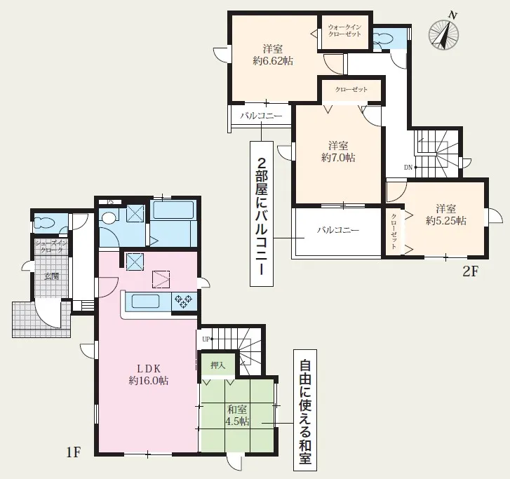 ◆全10棟の新築分譲地、モデル棟あり◆リビング横の和室が続き間としての開放感に♪バルコニーは2箇所あり家族全員のお洗濯物もしっかり干せます!<2号棟>
