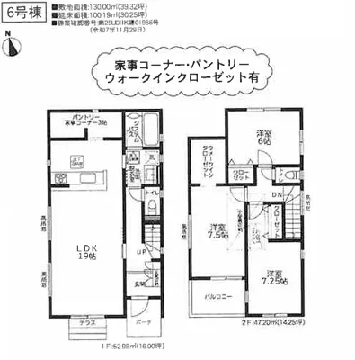 キッチン後方にパントリー&家事コーナーを完備!キッチン周りに水回りを集約した主婦には嬉しい家事動線♪2階のお部屋は全てゆとりの6帖以上☆<6号棟>
