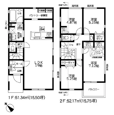 ゆったりと過ごせるLDKは19帖♪キッチン裏には収納豊富なパントリー完備!相模線「香川」駅徒歩圏内です☆ <2号棟>