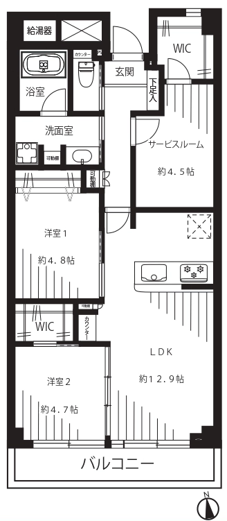 南東側と北西側の2面バルコニー。日当たり・通風良好です♪96㎡超のゆとりの4LDK!リフォーム済みです。
