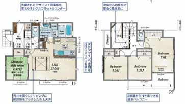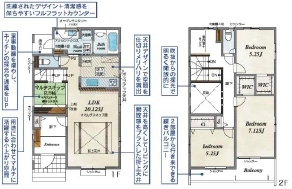 安心の住宅設備機器修理サービス対象物件◎家族のくつろぎにぴったりなリビング横の畳スペース♪並列2台分のカースペース(車種による)で来客時も安心◎【3号棟】