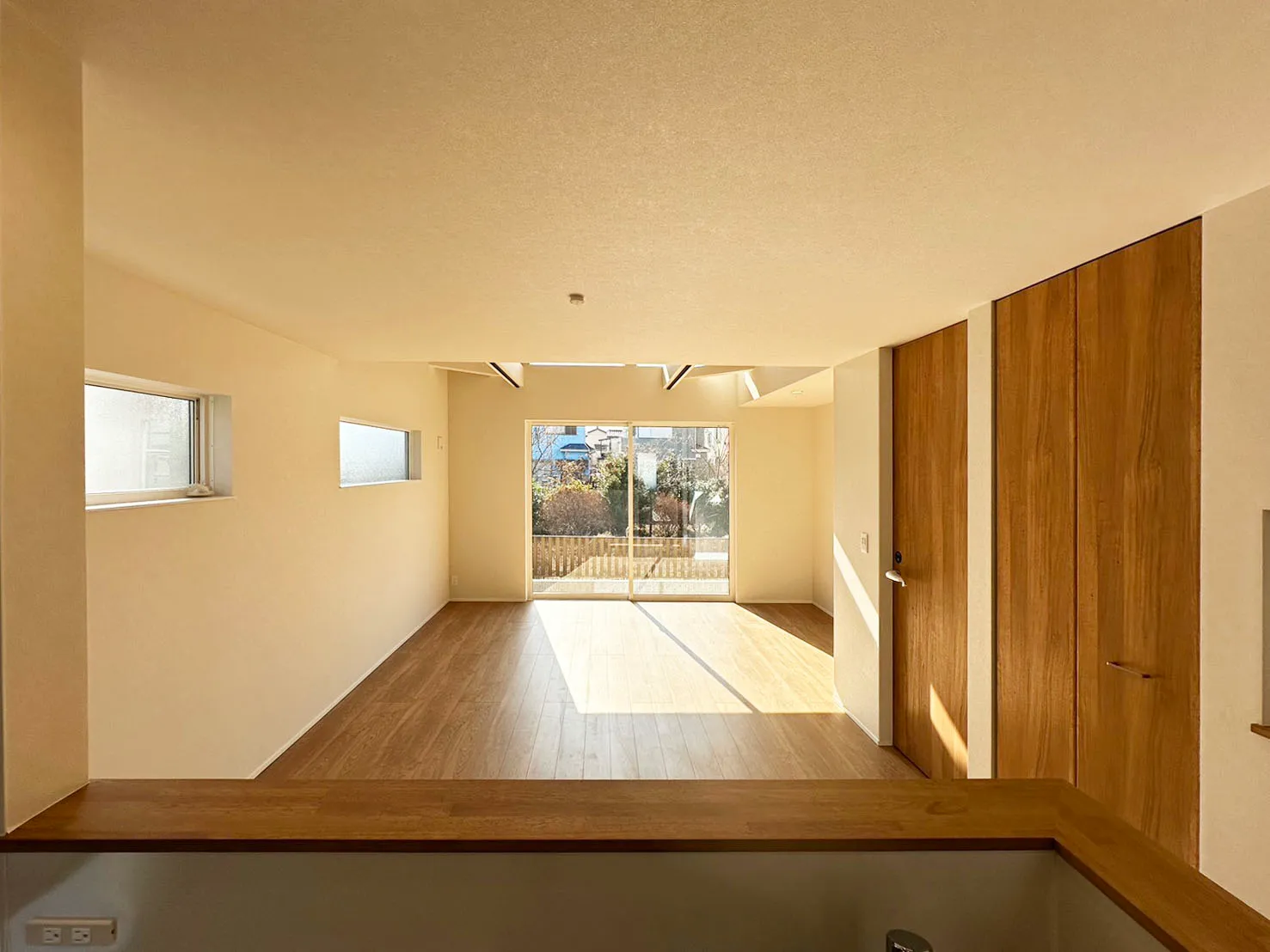 天井高3.1m大開口サッシと上部サッシにより、明るく開放感のあるリビング♪来客用など重宝する3台分のカースペース!南西側通路向かいは空地のため日当たり良好です☆ <B棟>