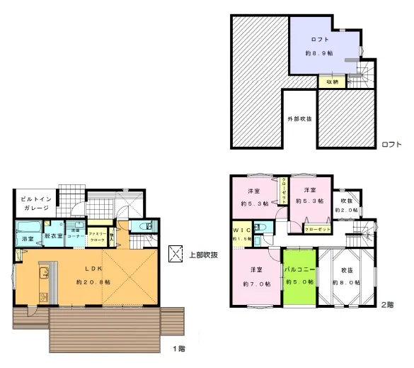 室内設備ロフト / ウォークインクローゼット / パントリー / リビング階段 / 吹抜け