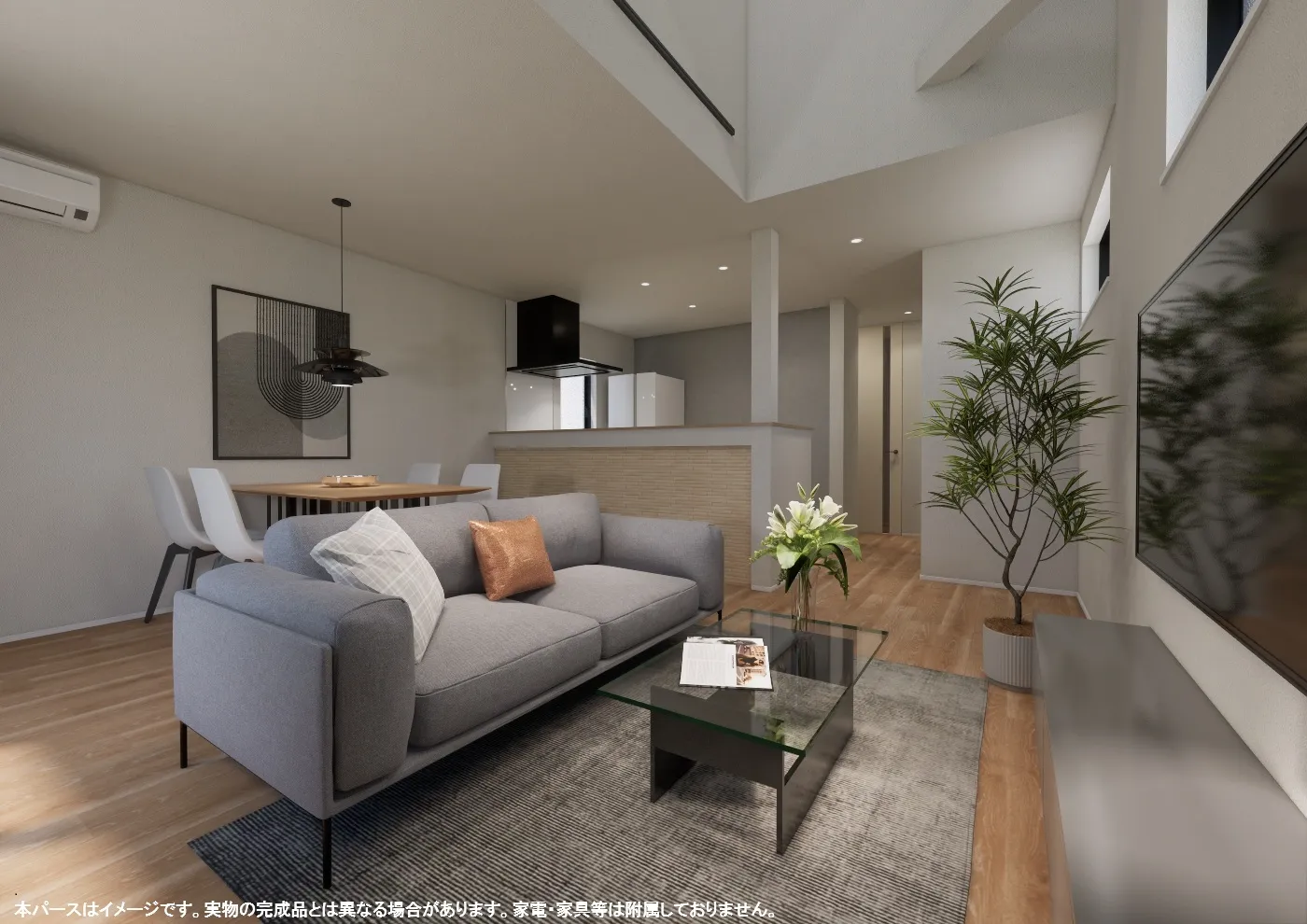 一部吹抜仕様のリビングで開放的! 家庭菜園やBBQも楽しめるルーフバルコニー付♪ カースペース2台分あり(車種による)【A号棟】