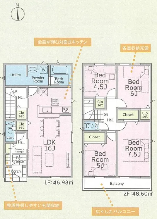 全居室収納付き、パントリー等収納豊富な住まい!約12.5帖のルーフバルコニー付き☆ 眺望の良い立地です!♪<B号棟>