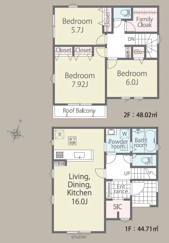 カースペース2台分あり(車種による)大型のSICとファミリークロークがあり収納豊富♪南向きで光がたっぷり差し込む住まいです!